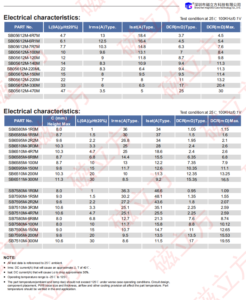電氣特性參數(shù) Electrical characteristics